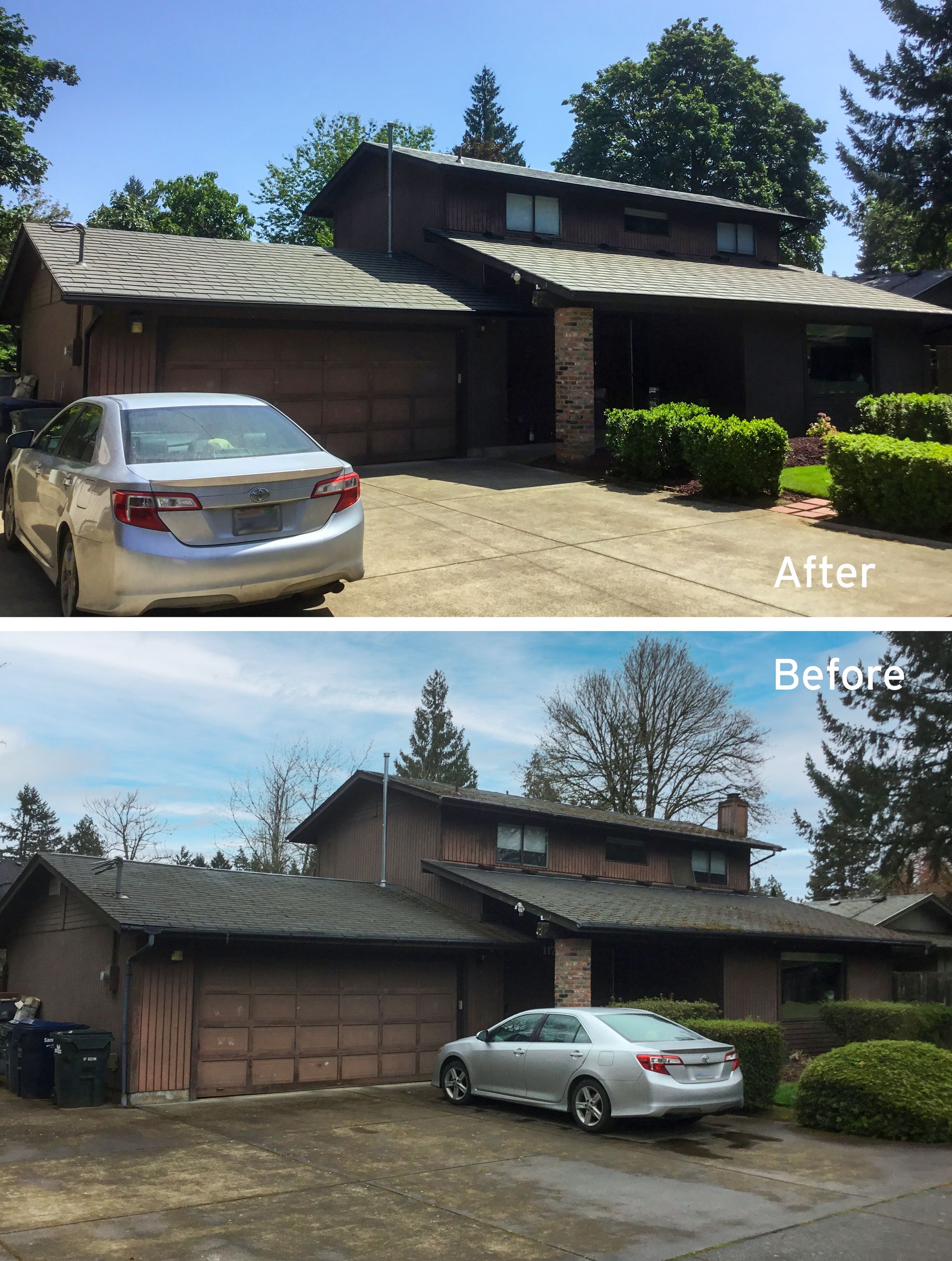 Witness the dramatic before-and-after transformation of this Eugene, Oregon home, courtesy of Interlock Metal Roofing! We replaced the aged asphalt shingles with our stunning Black Interlock Lifetime Slate Roofing System, injecting a dose of modern sophistication and worry-free protection.