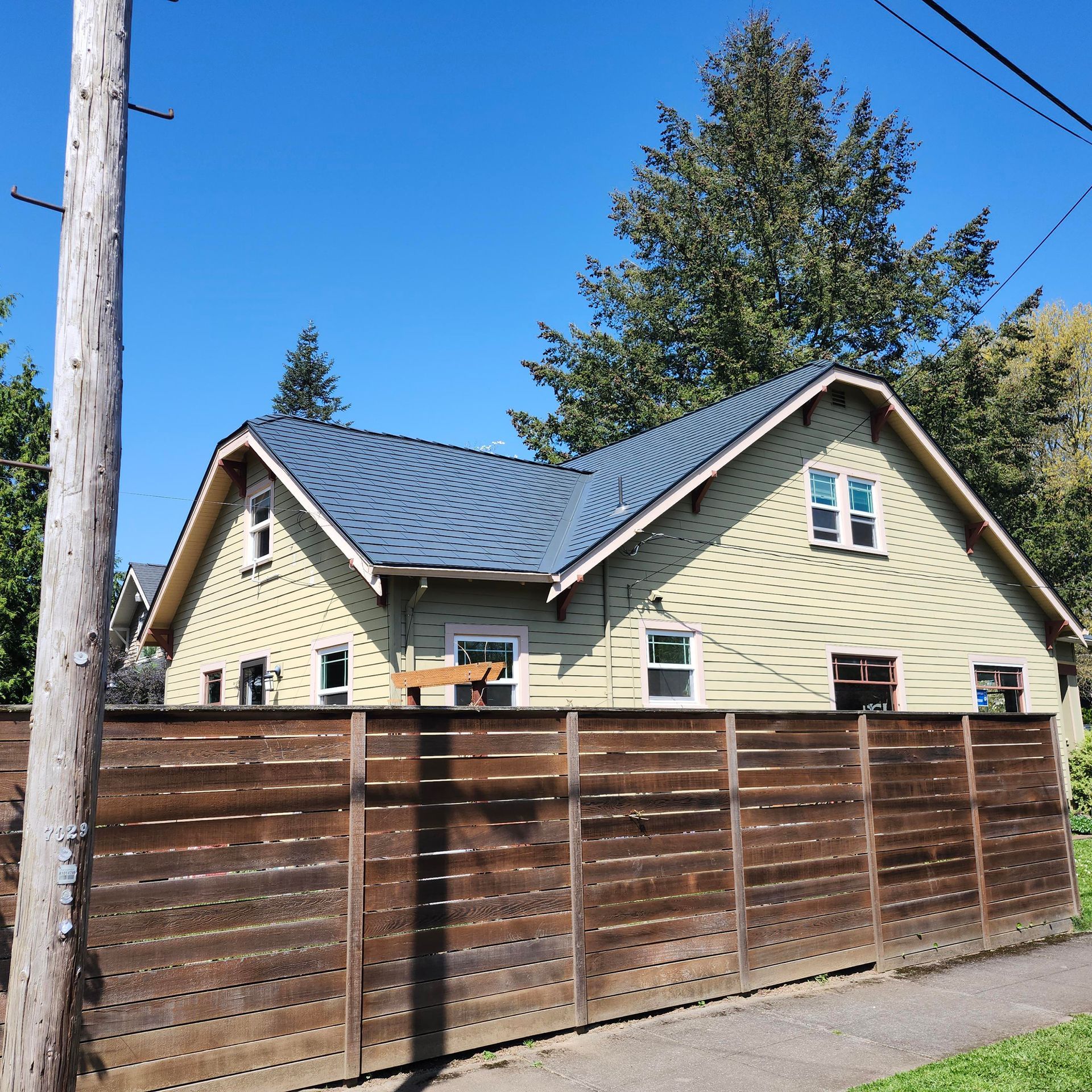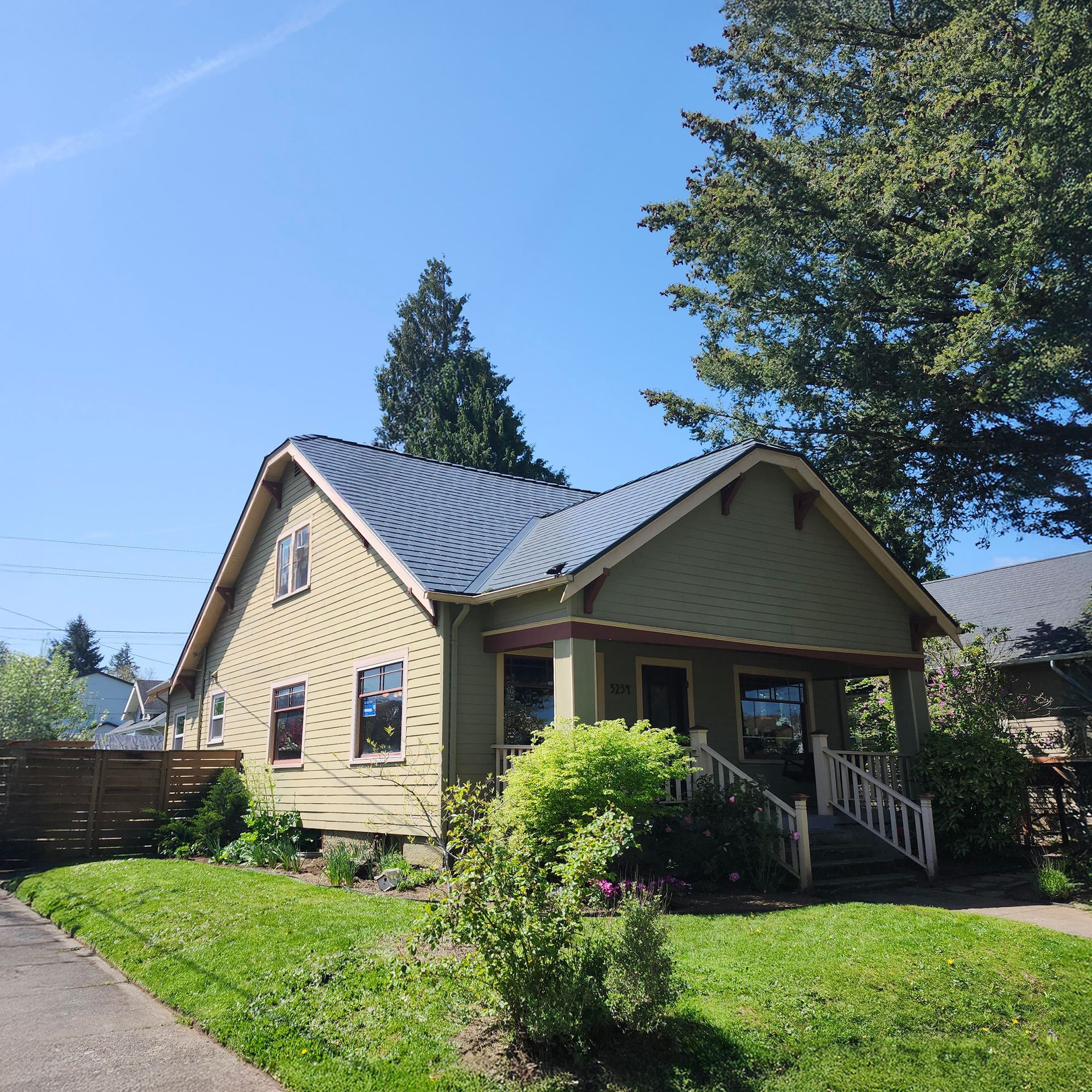 In the heart of Portland’s Portsmouth neighborhood, just across from the verdant expanse of Portsmouth Park, a classic 1928 bungalow has embraced a modern transformation. This residence, situated near the University of Portland, now boasts a Deep Charcoal Interlock Slate Metal Roofing System—a choice that marries timeless aesthetics with cutting-edge durability.